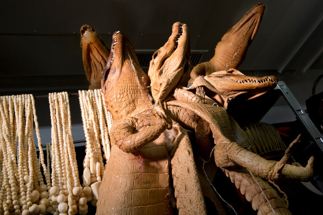 Derrière chaque objet, précise encore le musée, « il y a un animal, une histoire, de la souffrance, des problématiques sociales, économiques et écologiques […] Les frontières se brouillent entre le bien et le mal, le noir et le blanc […] Ce qu’illustre, par exemple, le cas du varan malais : l’espèce est protégée mais son commerce est autorisé tant qu’il ne menace pas ses populations.