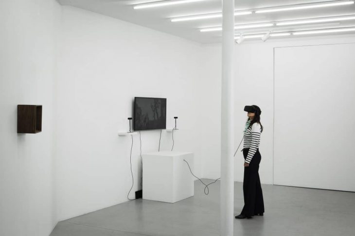 L’exposition propose également l’installation immersive Eternal Landscape, qui permet au spectateur, à l’aide d’un casque de réalité virtuelle, de plonger au milieu des ruines dans l’univers achromatique de l’artiste. La confrontation entre l’homme et la nature se poursuit avec le film Fall into oblivion, où l’on est témoin des déambulations urbaines d’un personnage vêtu d’une armure de Kendo, une figure solitaire au milieu d’une métropole occupée. Un scénario influencé par la lecture de « Peach Blossom Spring » de Tao Yuanming.