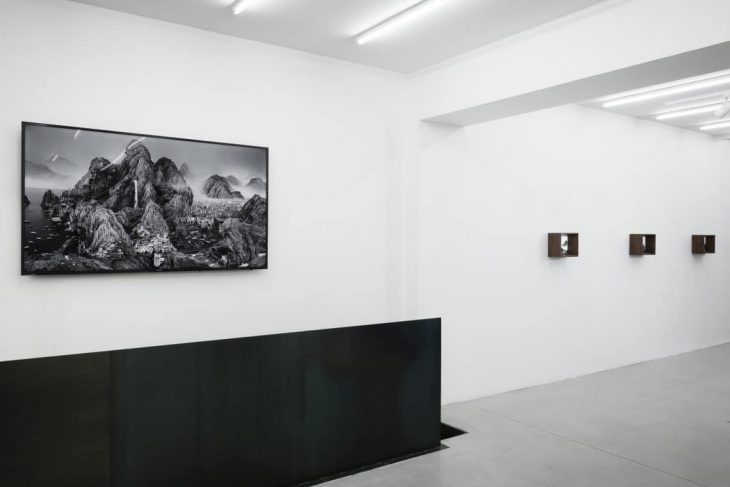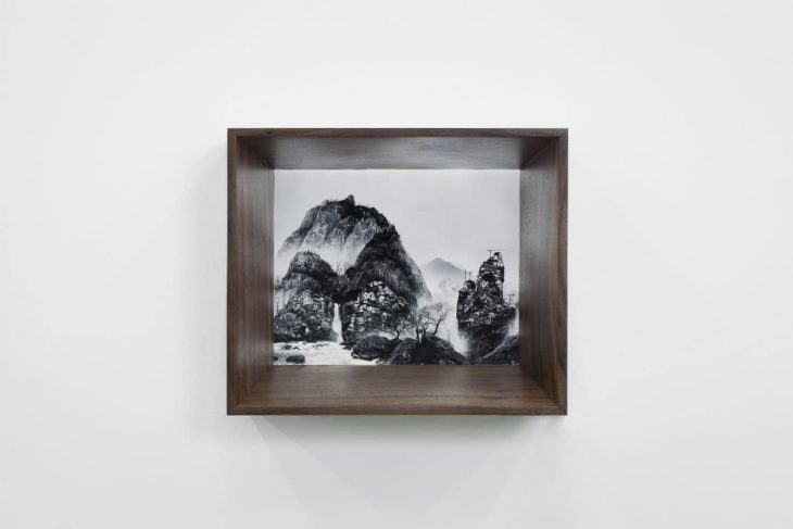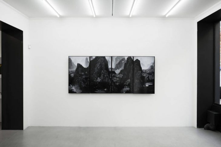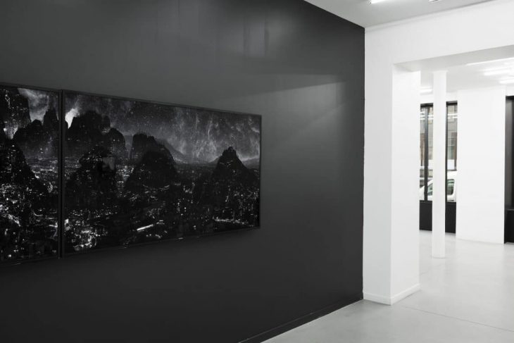 L’exposition Time Immemorial sublime le réel et invoque le spirituel. Ses temps immémoriaux sont comme des futurs antérieurs, l’artiste s’inspire du passé et du présent pour livrer une vision onirique de l’avenir. Ses assemblages, où se mêlent montagnes et villes, provoquent une temporalité visuelle instantanée : cela pourrait arriver, comme cela pourrait avoir déjà eu lieu… D’une certaine manière Yang Yongliang a créé sa propre machine à voyager dans le temps, et la mise en espace de l’exposition confirme le processus. Quand l’un des murs de la galerie fait le jeu des écrans plats modernes, celui d’en face oppose des cadres de bois traditionnels de la tradition pictural chinoise.